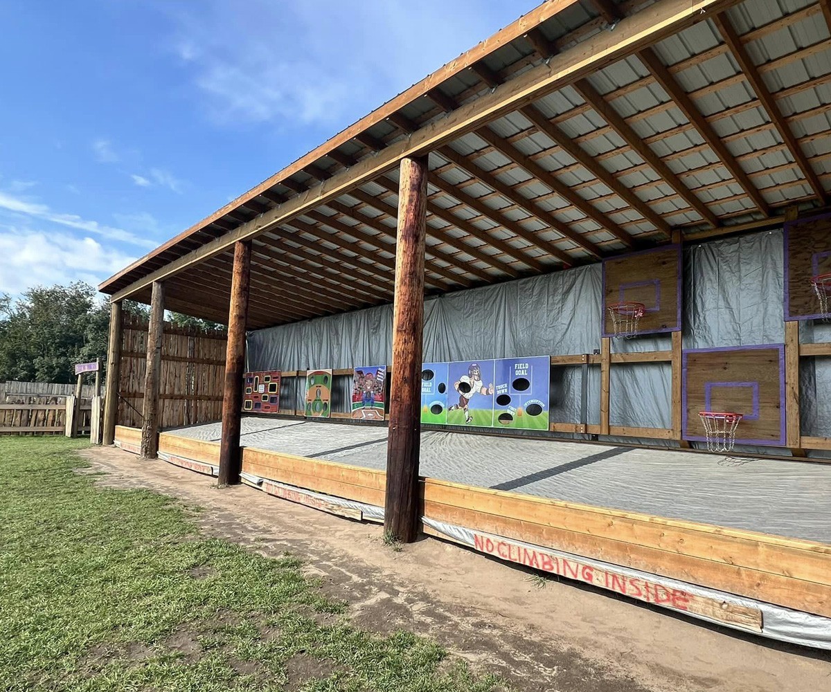 R is for RING TOSS. Find yourself surrounded by games including ring toss, horseshoe, cornhole, sports ball challenges, and more.