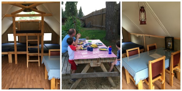 At the Fort Langley National Historic Site there are 5 oTENTiks and we stayed in #4 the gold rush themed cabin. Check-in time is between 3pm – 5pm; I highly recommend arriving as early as possible, since all buildings (except the washrooms) are locked down at 5pm to give yourself the opportunity to tour the Fort and check out your surroundings.