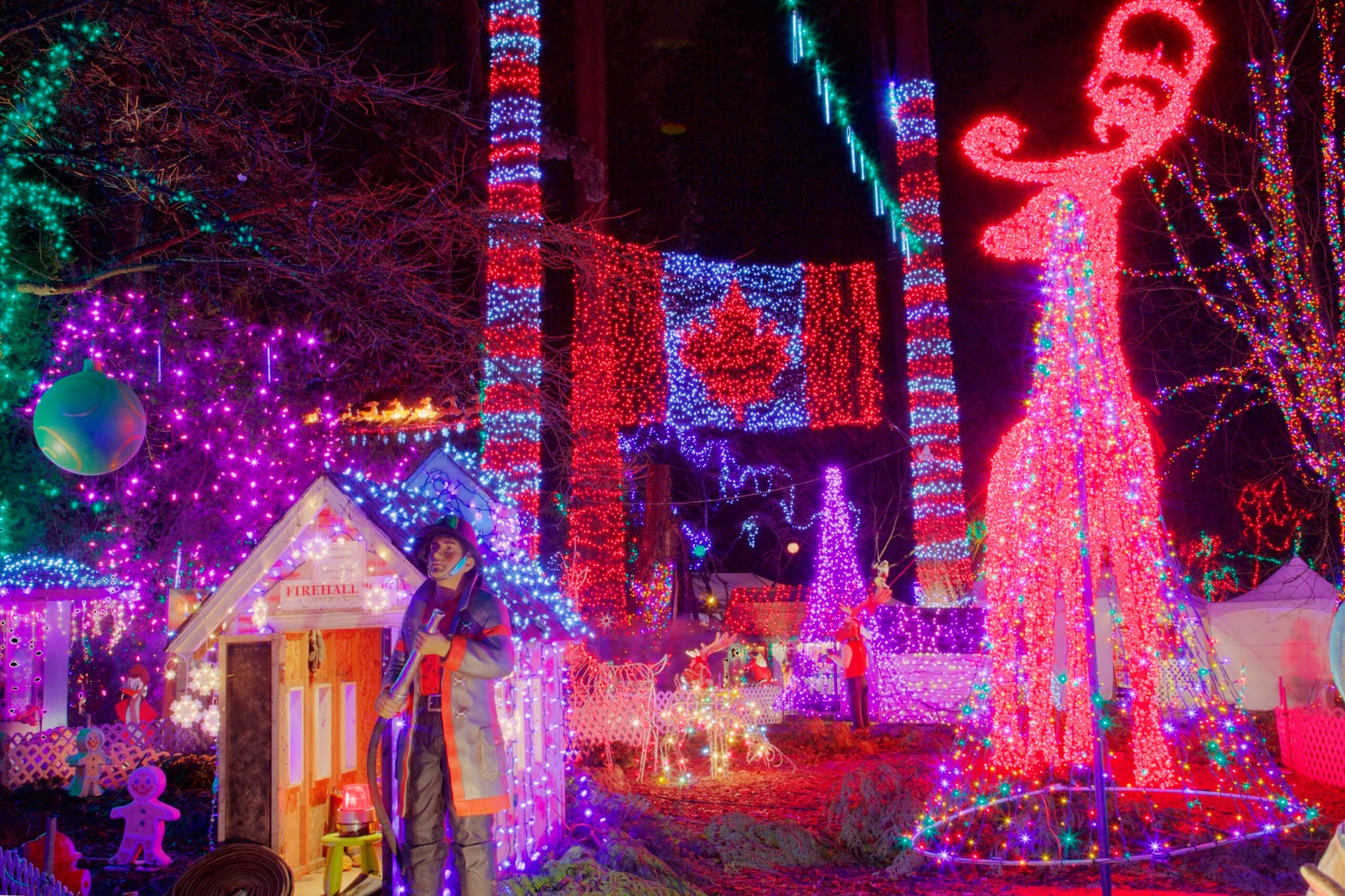 Begin your visit by stepping into Noel Surrey, conveniently located at the Cloverdale Fairgrounds. Here you’ll find over 1 million dazzling lights arranged in a series of larger-than-life displays, LED forests, and illuminated tunnels for a fully immersive experience. Kids (and adults alike) will marvel at the artistry of the light displays, which provide ample opportunities to snap a great family photo! Tickets include free, unlimited rides on the 50 ft Ferris Wheel from Nov. 28 – Dec. 19 and the Berry-Go-Round bumper cars from Dec. 20-28. Attendees will love the breathtaking, firefighter-built light display with proceeds going to the burn fund, and the 30,000+ sq. ft. massive indoor “Noel Village”.