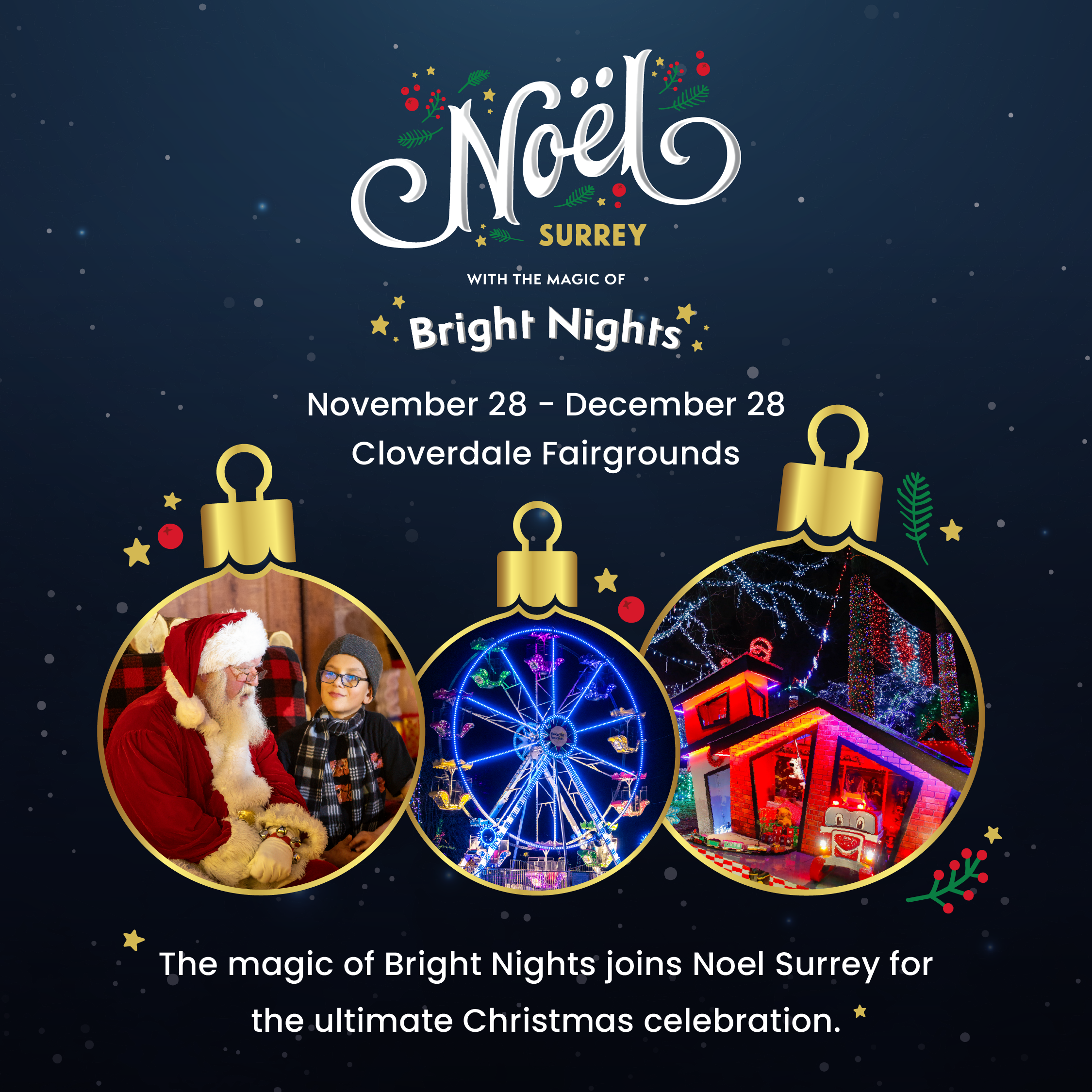 Embrace the joy and wonder of the holiday season at Noel Holiday Light Festival! Don’t miss one of the most popular events of the season, with the addition of the beloved Bright Nights Light Walk, formerly in Stanley Park, joining Noel to make the event even more exciting! This festive atmosphere has something for everyone to enjoy, from mesmerizing light displays, market vendors, Bright Nights Light Walk, rides for the whole family, kids’ activities like face painting and crafts, and photos with Santa.