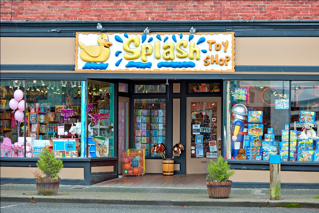 After the pier we wandered the network of alleys and streets that meander through Steveston. We happened upon a fantastic toy store, Splash Toys. I have a soft-spot for non-chain toy stores. I love the creativity toy store owners show when they have the freedom to bring in non-traditional brands. We spent at least an hour in Splash and could have happily spent many more, but we had a reservation.