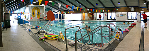 The pool facilities include a slide, rope swing, sauna and whirlpool. Swimming lessons are offered for all ages and abilities, including courses in advanced aquatic leadership.