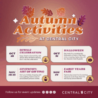 October 31 | Head to Central City for a fun afternoon of trick or treating. Kids will enjoy face painting and arts and crafts, and special meet-and-greets with exciting characters, such as Princess Belle, Elphaba and Glinda! Snap a faBOOlous photo at one of the many festive decor spots and make this a Halloween to remember! For more details, click here.